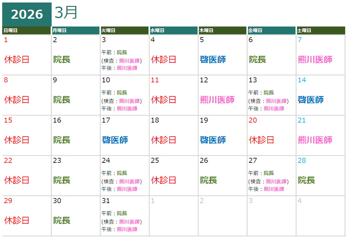 ※水曜日の★は不定期診療です。診療する際は新着情報に掲示します。