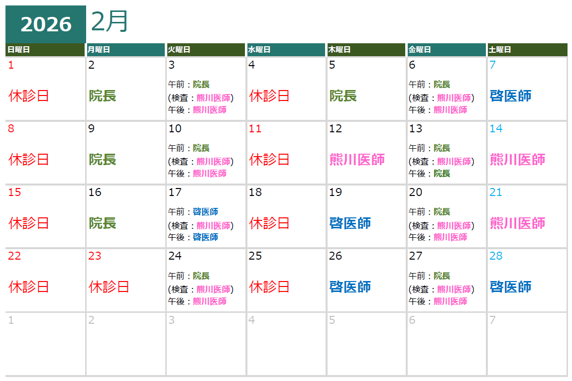※水曜日の★は不定期診療です。診療する際は新着情報に掲示します。